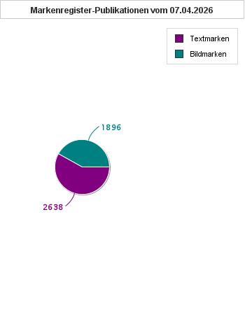 Heute am 07.04.2026 wurden 4534 Markeneinträge (2638 Textmarken und 1896 Wort-/Bildmarken) publiziert.